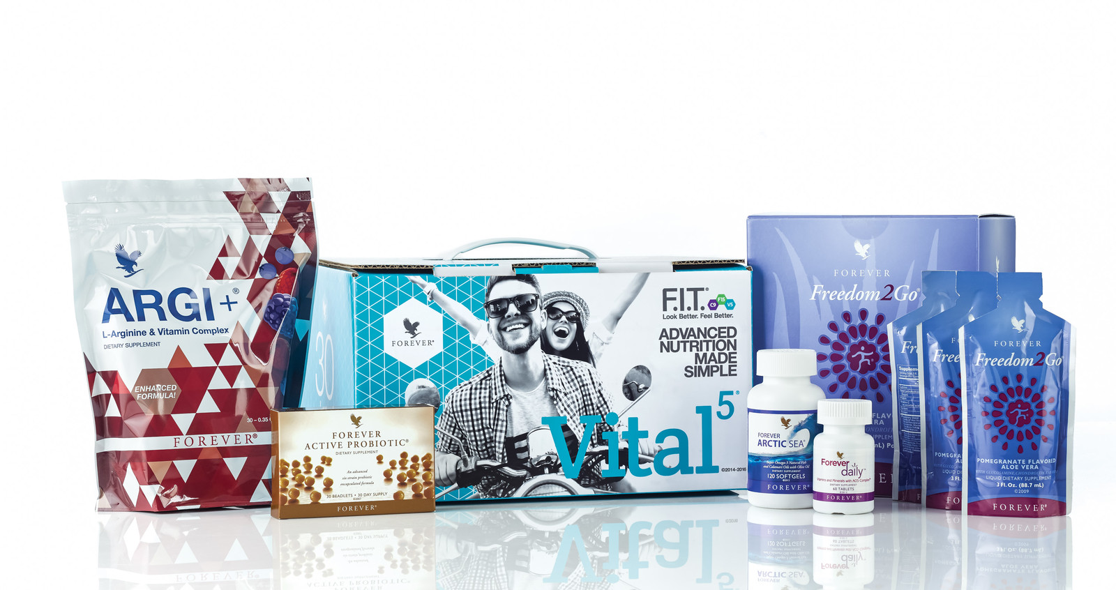 Forever Vital 5 to prosty sposób na zaawansowane odżywianie – nasze wsparcie zdrowego odżywiania na co dzień w jednym wygodnym zestawie. Vital5 zawiera Aloe2Go, Forever Daily, Forever Active Probiotic, Forever Arctic Sea i ARGI+. Razem, produkty te wspierają transport substancji odżywczych do komórek i tkanek naszego organizmu.